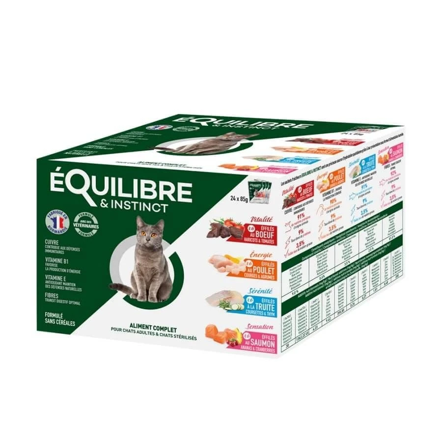 Les éffilés d’Équilibre & Instinct sont de délicieuses recette de pâtée pour votre chat stérilisé va apprécier. Composées d’ingrédients de haute qualité et riches en protéines, elles apporteront à votre chat les nutriments, l’hydratation dont il a besoin.
