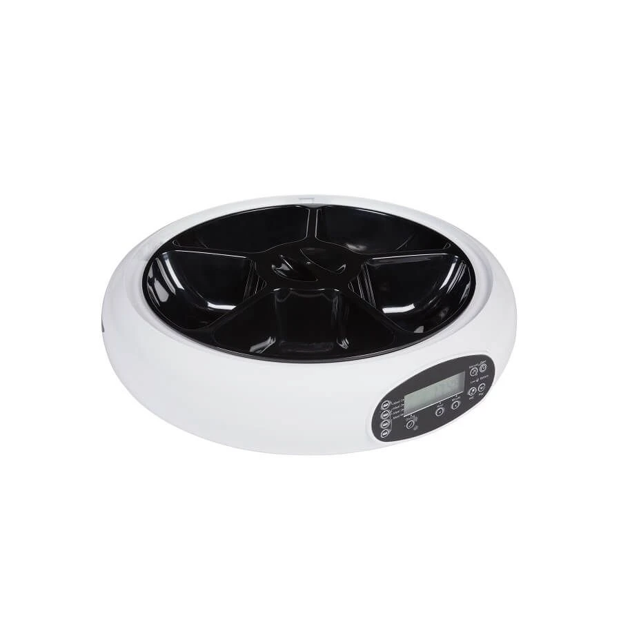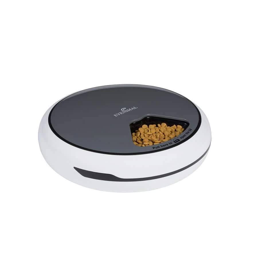Vous aurez la possibilité de programmer jusqu’à 4 repas par jour grâce à ce distributeur qui s’actionnera aux heures souahitées. Il vous sera possible d’enregistrer un message vocal pour inviter votre animal à découvrir un compartiment contenant jusqu’à 250 ml de nourriture sèche pour le régaler.