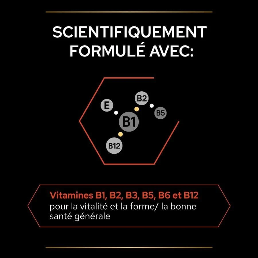 Son complexe en Vitamines B soutiendra la vitalité de votre compagnon tout en favorisant une belle peau et un beau pelage.