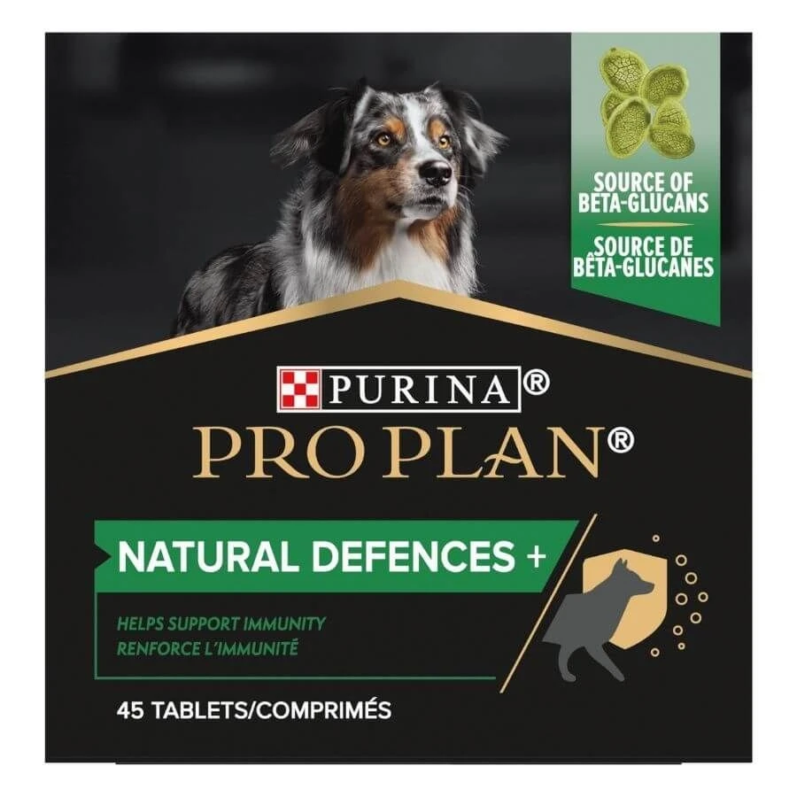 Natural Defences + Pro Plan®  est un aliment complémentaire spécialement conçu pour votre chien. Il est formulé par des vétérinaires sans conservateurs, sans colorants et sans sucres, en pensant à son bien-être.