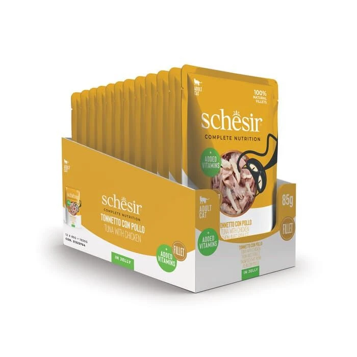 La gelée Sachet Chat de chez Schesir est une préparation savoureuse spécialement conçue pour les Chats adultes. Ce produit de haute qualité offre une alimentation équilibrée et complète.