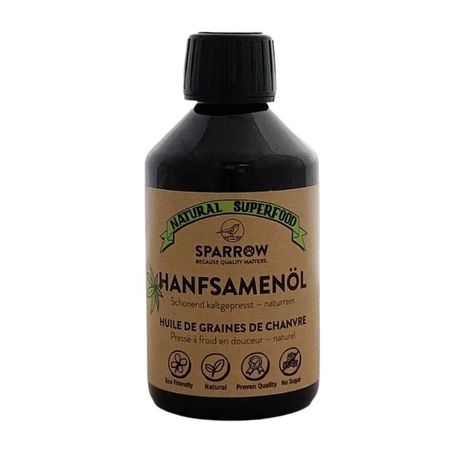L’huile de graines de chanvre bio de Sparrow Pet Premium a été pressée à froid afin de préserver les nutriments importants.