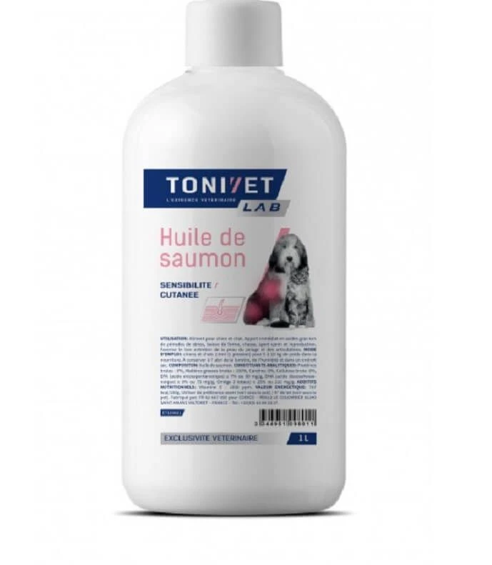 L’huile de saumon de chez Tonivet est un complément alimentaire pour chiens et chats de haute qualité.