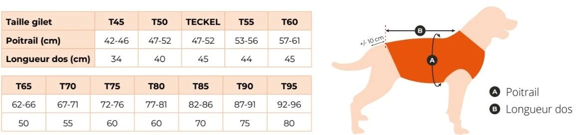 Grâce à une pince intégrée, le gilet épouse parfaitement la forme bombée du poitrail du chien, tout en préservant sa cage thoracique. Ce design permet un ajustement précis et confortable. Le gilet comprend un rabat de protection ventrale qui se déplie facilement pour couvrir intégralement le bas-ventre et protéger les mamelles en cas de besoin. Ce rabat est particulièrement utile lors des sorties en terrains accidentés.